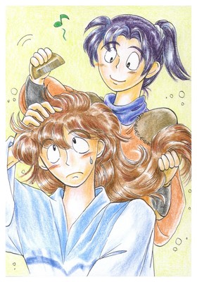 {◎家では、きり丸が先生の髪をとかしてるのだろう…(たぶん)◆ちなみに普段は頭巾で見えませんが土井先生も長い髪を結ってます(17期43話、21期18話、22期65話、30期35話など…)そして髪結い泣かせの「ものすごいクセっ毛」です…忍者は女装することもあるので皆、髪を伸ばしてるのだろうか…?◆最初、劇場版の長い髪は「行方不明だった時間」を表現してるのかと思いましたが元から長かったんだな…髪を隠さないのは、性格が豹変してしまった事を暗示してるようです◆ところで「ツゲのクシ」なんて、こんな高級品を彼らは持ってないよね}