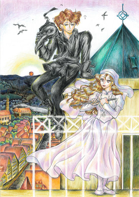 {◎前作「月夜とダイヤモンド」の続編…夫婦ケンカした怪盗とお嬢さんの仲直りと、贋作騒動(がんさくそうどう)で引きはなされた恋人が復縁する話…背景はドイツのロマンチック街道の「ローテンブルク」。ここには「犯罪博物館」(魔女裁判の資料館)もあります…}