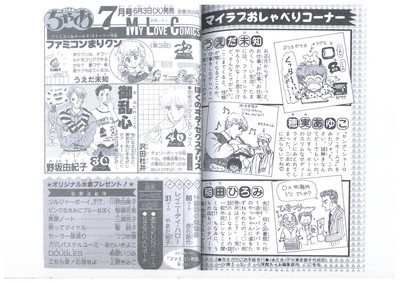 {◎1986年の他の別冊付録は,うえだ未知先生のイラスト,マンガは確認できませんでした◆また「1986年07月小学三年生ファミコン秘伝技大全集」は冊子ではなく「1枚ポスター折込もの」で目次がありません◆マイラブコミックスの次号予告が3箇所ありませんが,これはマンガが偶数(右ページ)で終わってるためで資料はありません.