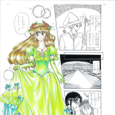 ◇マンガ『好都合な呪文』カミール姫 {◎王子の魔法をとくため魔法使いになるお姫様。髪(かみ)かざりはオーナメント(魔除け)。着想はホーエンツォレルン城(ドイツ)の伝説「白衣の女」より} #6aumkuchen ***[2021-r3]
