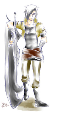 いつも女装させられてるけど普段着はこんな感じで大剣使いのマチョメン。