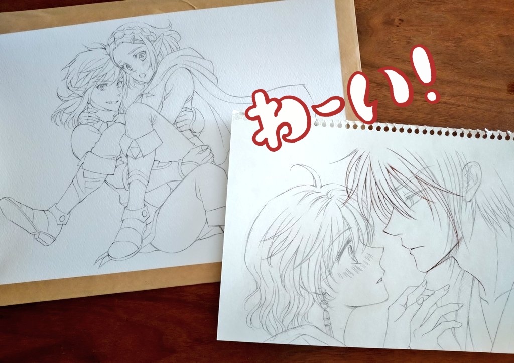 まずは下絵を用意してるところ。リンゼルはこの前の(デジタルラフ)を鉛筆でトレスし、水張りしました