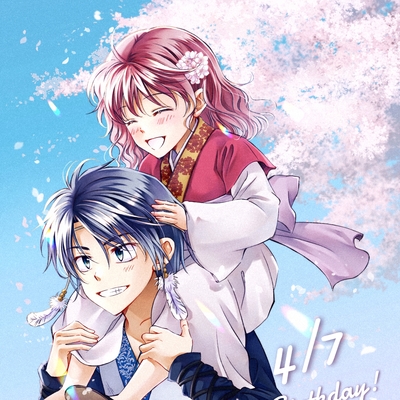 ヨナ姫誕生日おめでとうございます💐今年もお祝いできてうれしい! 毎年色々描いてきましたが、ちびっこハクヨナは初なので描きました 「若葉風」の幼馴染組が大好き 背景の桜はメイキングを参考にしました。なかなか描きやすかった!