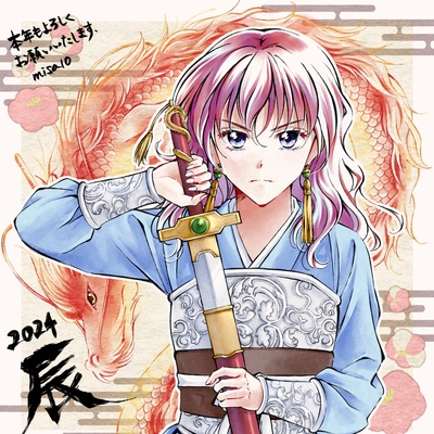 お年賀の時期もだいぶ過ぎてしまいましたが、辰年と言えばヨナキャラ!と言うことでヨナちゃんと緋龍です。龍なんて描いたことないのでめちゃ時間かかった… 改めて今年もよろしくお願いいたします 余談ですが、ポーズの参考には魔法のステッキ(娘作)を持った自撮りを使いました😂 サイズがちょうど良かったので…