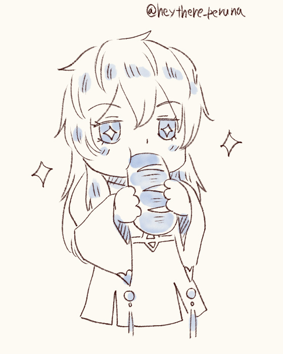 なんとなく、ミナユキが米、シアンがパン、コレットが麺担当(以前描いたラクガキから)という感じになっているのだが、定着するかは不明。シアンのパン狂いは決まっているけど。