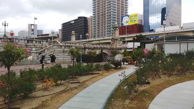 なお中江橋付近にはバラ園があったり、市役所前に関西大阪万博会場に置かれていたミャクミャク像(涅槃Ver.)がいましたので、ついでに載せておきますf^_^