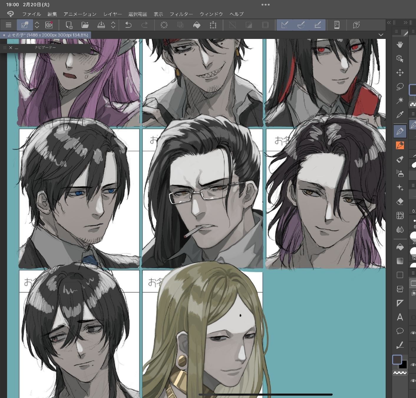 20240220(火)19:05ブルースカイで繋がってる方々の創作キャラさん達をちまちま描いてます(まだ中央列のお二人しか完成してませんが…)