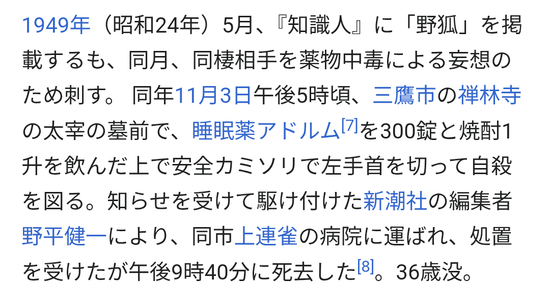 20260420(月)17:36コメントする ( 0 )「全く複雑のようで簡単ね。死ぬ人の心理なんて。死ぬ動機だって一言で云いあらわせてよ。死にたいから死ぬの。何故って? 理窟づけられないわ。生理的よ。衝動的よ。泣く、笑う、死ぬ、みんな同じだわ。他愛のない所作でしょうよ」
