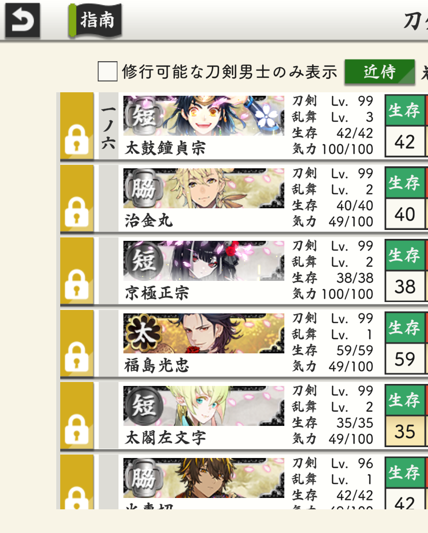 全員極めたけど、全然レベリングできてません……。刀剣乱舞
