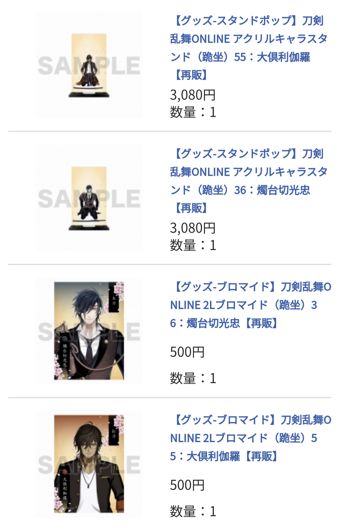 光忠と伽羅ちゃんのグッズ、他にも欲じい゛ぃ゛ぃ゛とのたうち回ってます。あーもうダメだ。