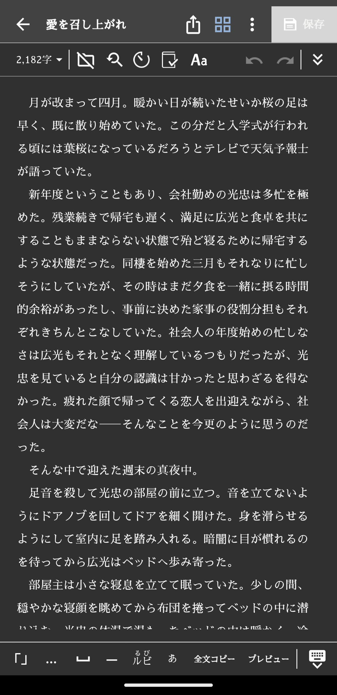 それはそうと、伽羅ちゃんが光忠相手の夢小説を書いているというネタで何か書きたい。完走