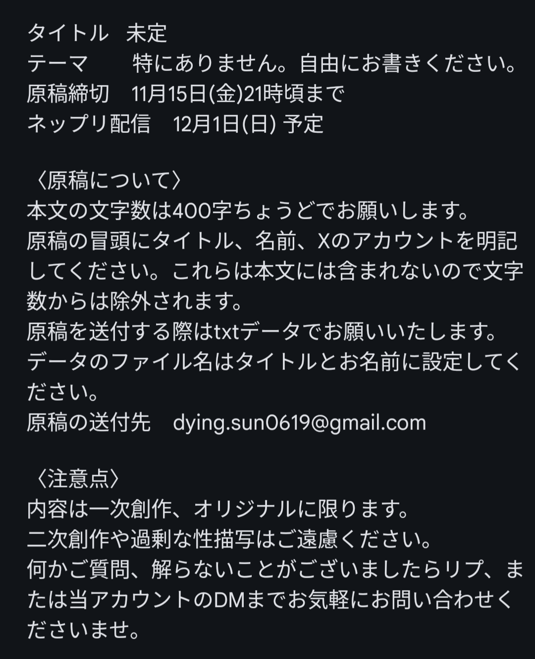 作品を書く時はタイトルが決まってから書き出すのが私の中のルールです。でないと中身が迷走するし、テーマ(なんてあるのか)がブレる気がして書き進められない。