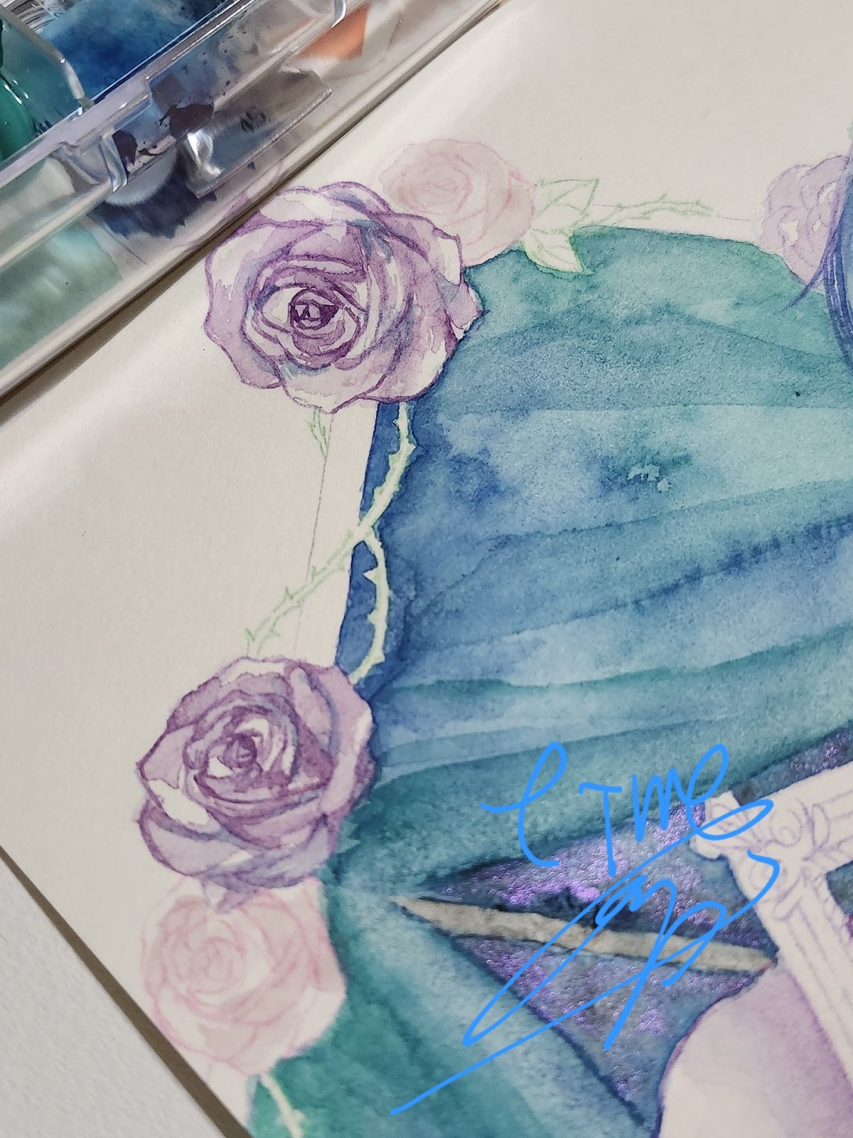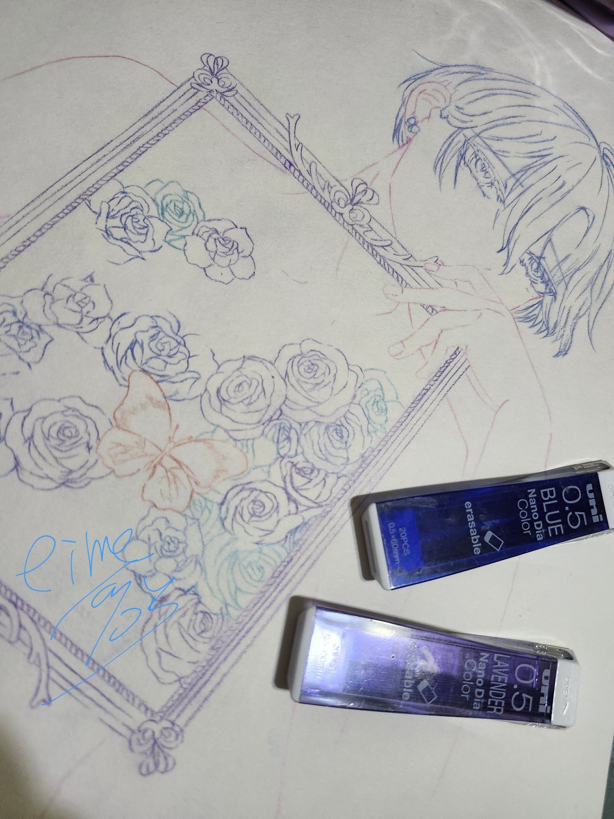 あと、バラめっちゃ描いてたイラスト完成したんだけど偶然の産物ありまして、正面からみたら体部分に何か描かれてるな…みたいな