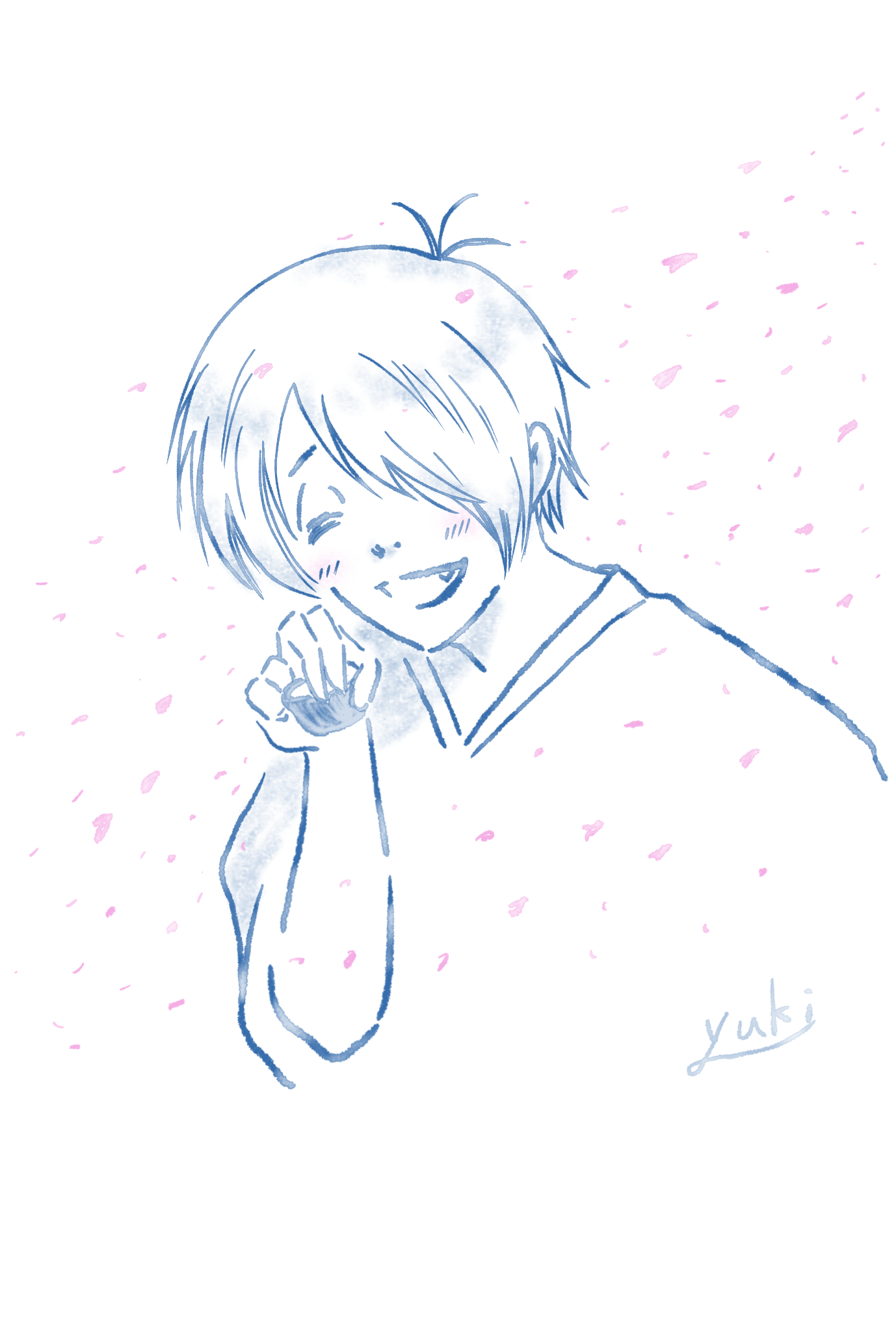 幸せそうに笑う推しが見たくて描いた絵。最近は、にじみ水彩のペン設定で描くのが楽しい。