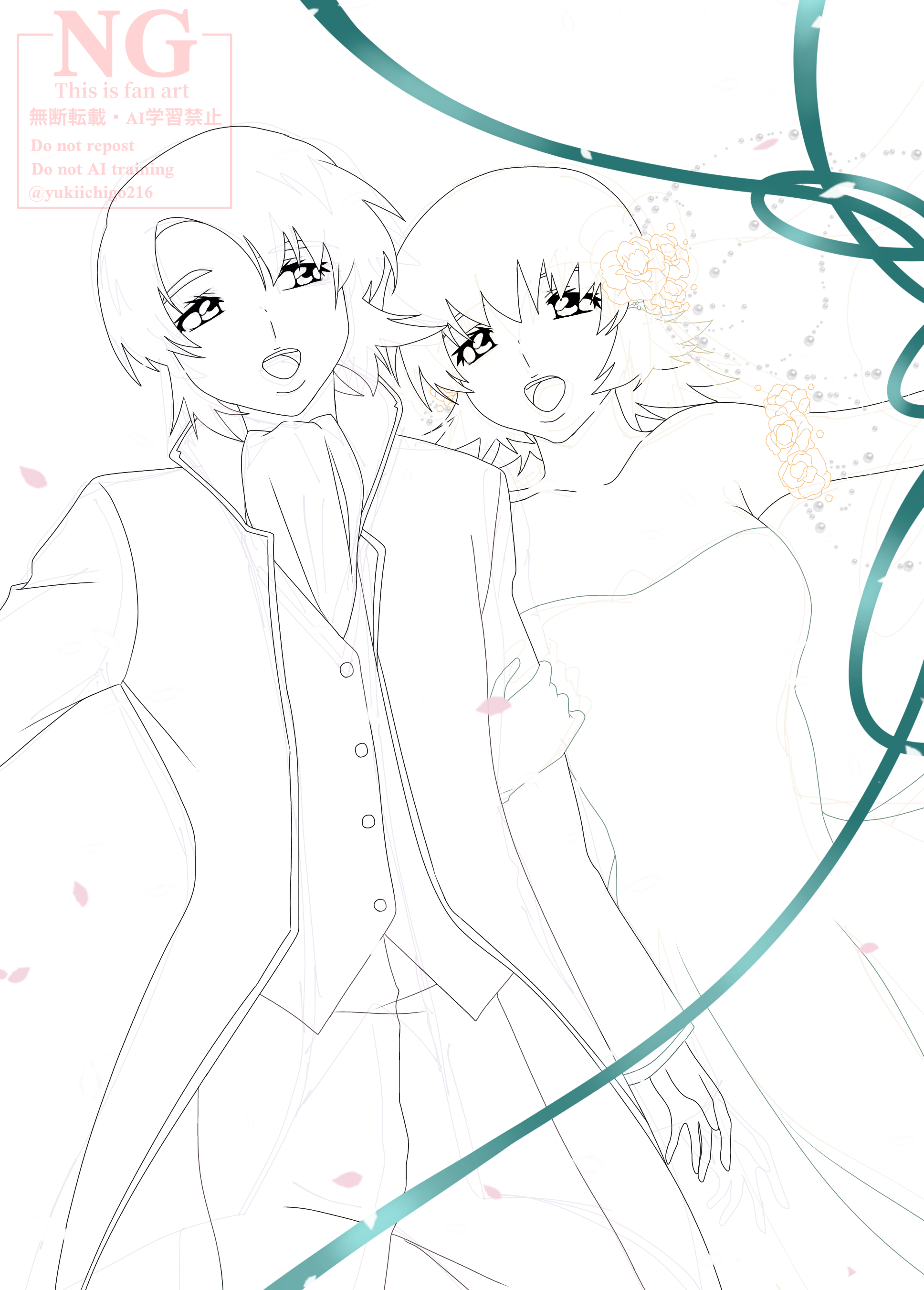 カガリの衣装の真珠やら薔薇やらちまちま描くのが大変でしたが、もうこれウエディングでしょ!!👏のテンションで描き上げました。アスランは肩というかもう首元くらいまでしかわからんのだけど…でも王子様っぽい衣装なのはわかる!!!好き!!!