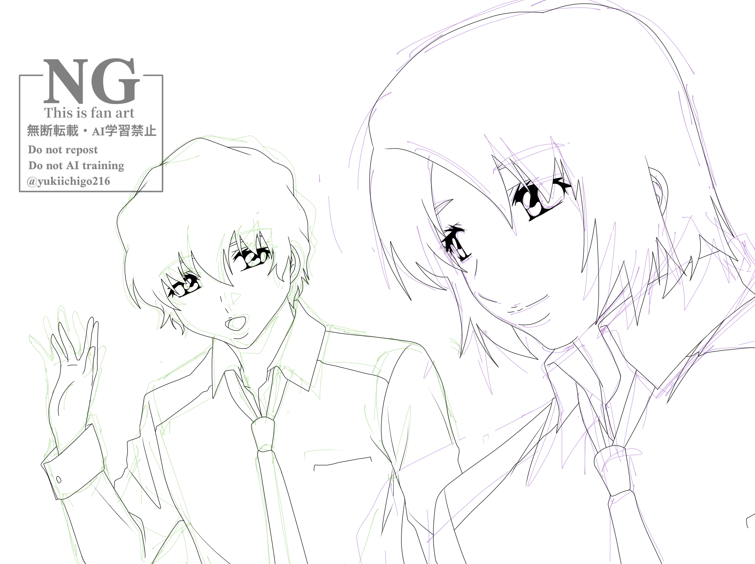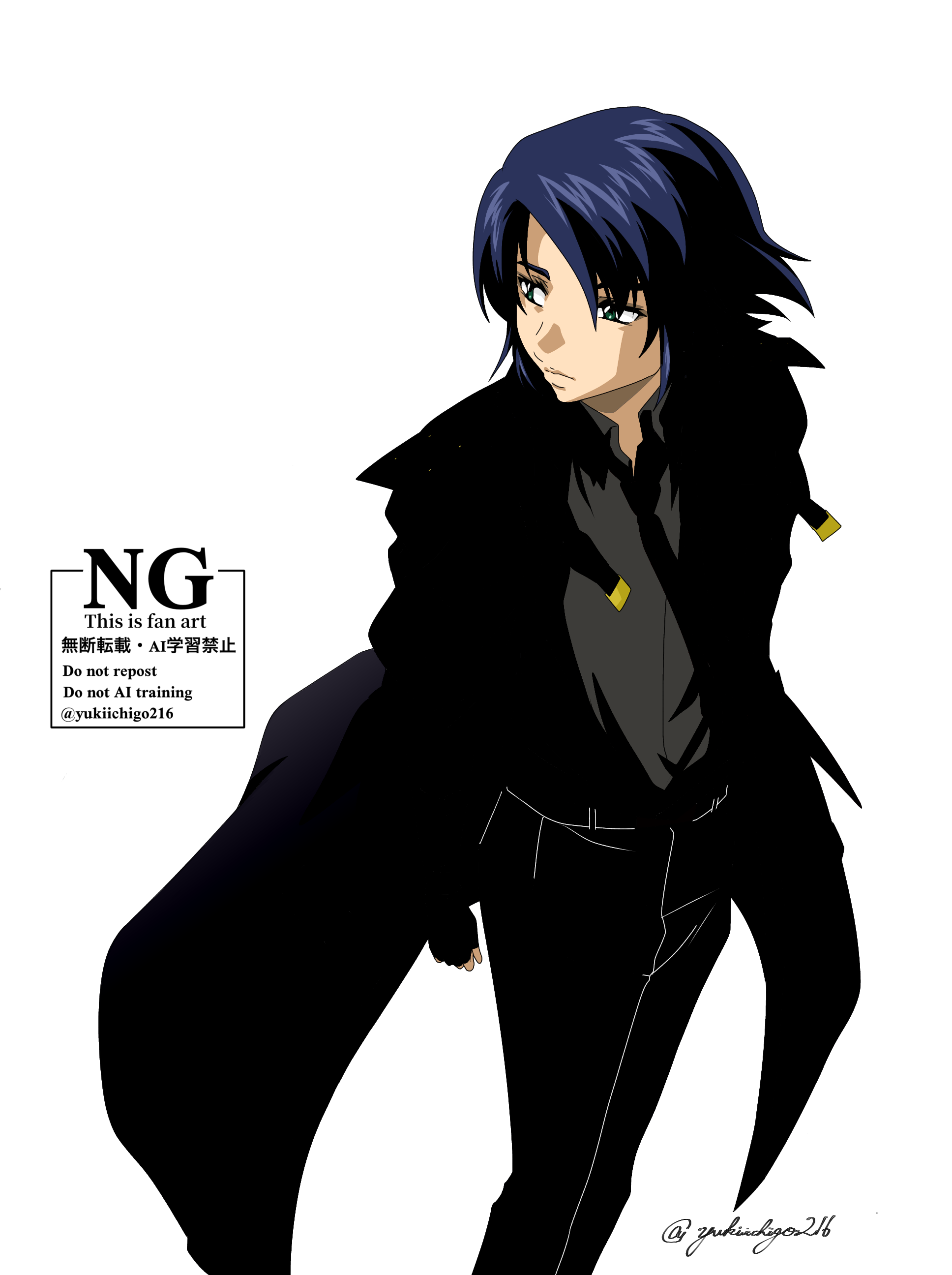 以前グレスケ練習でも描きましたが、実際原稿で進めていくとアスランのベタがめちゃくちゃ大変すぎる😇というのも全体的に黒っぽい衣装、紺髪なので色の濃紺が出し辛いというか塗る箇所もたくさんで…頭が混乱しかけますw