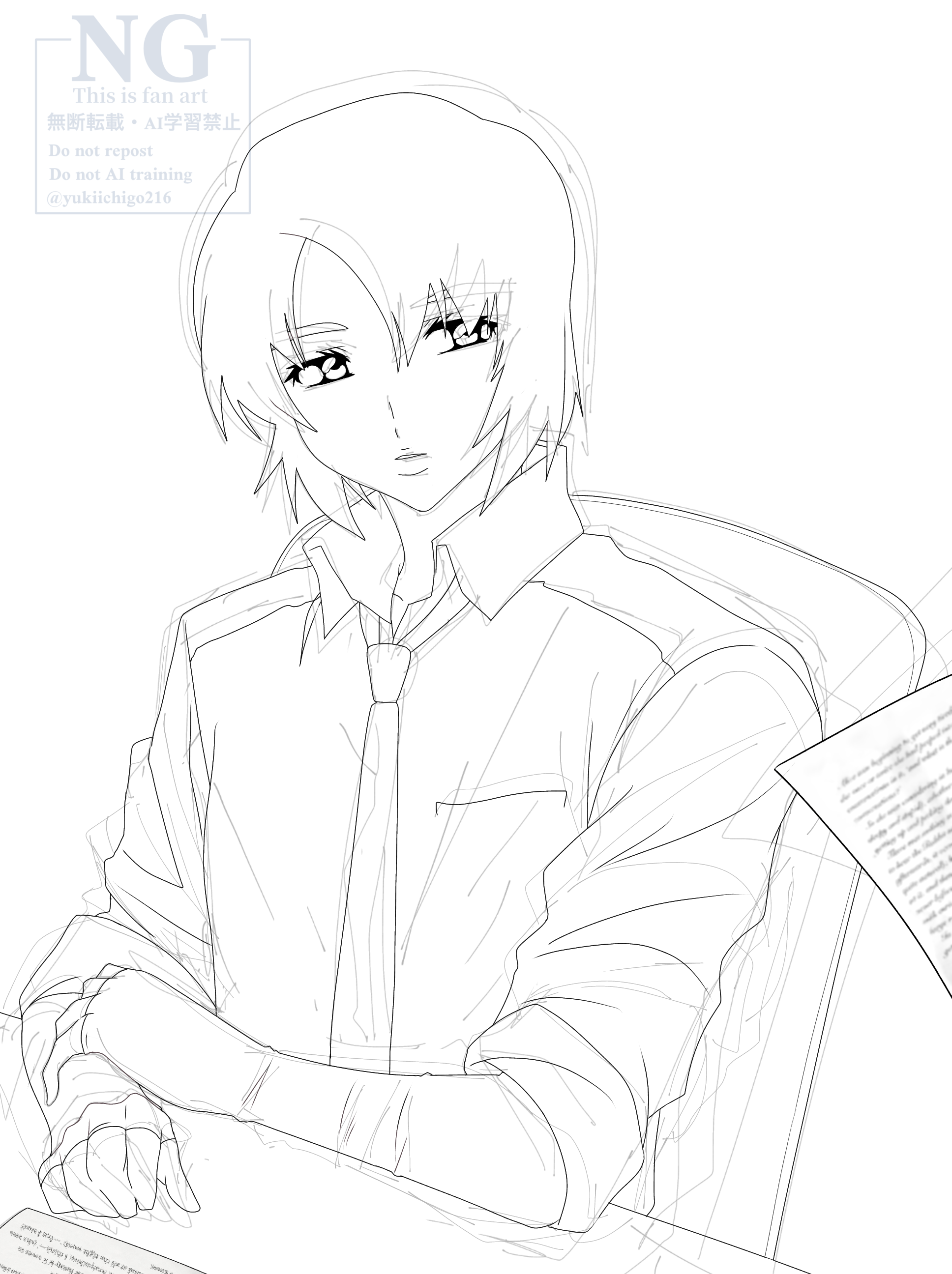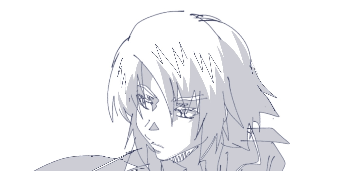 ↓グレスケ練習用アスランのラフイラストについて本について