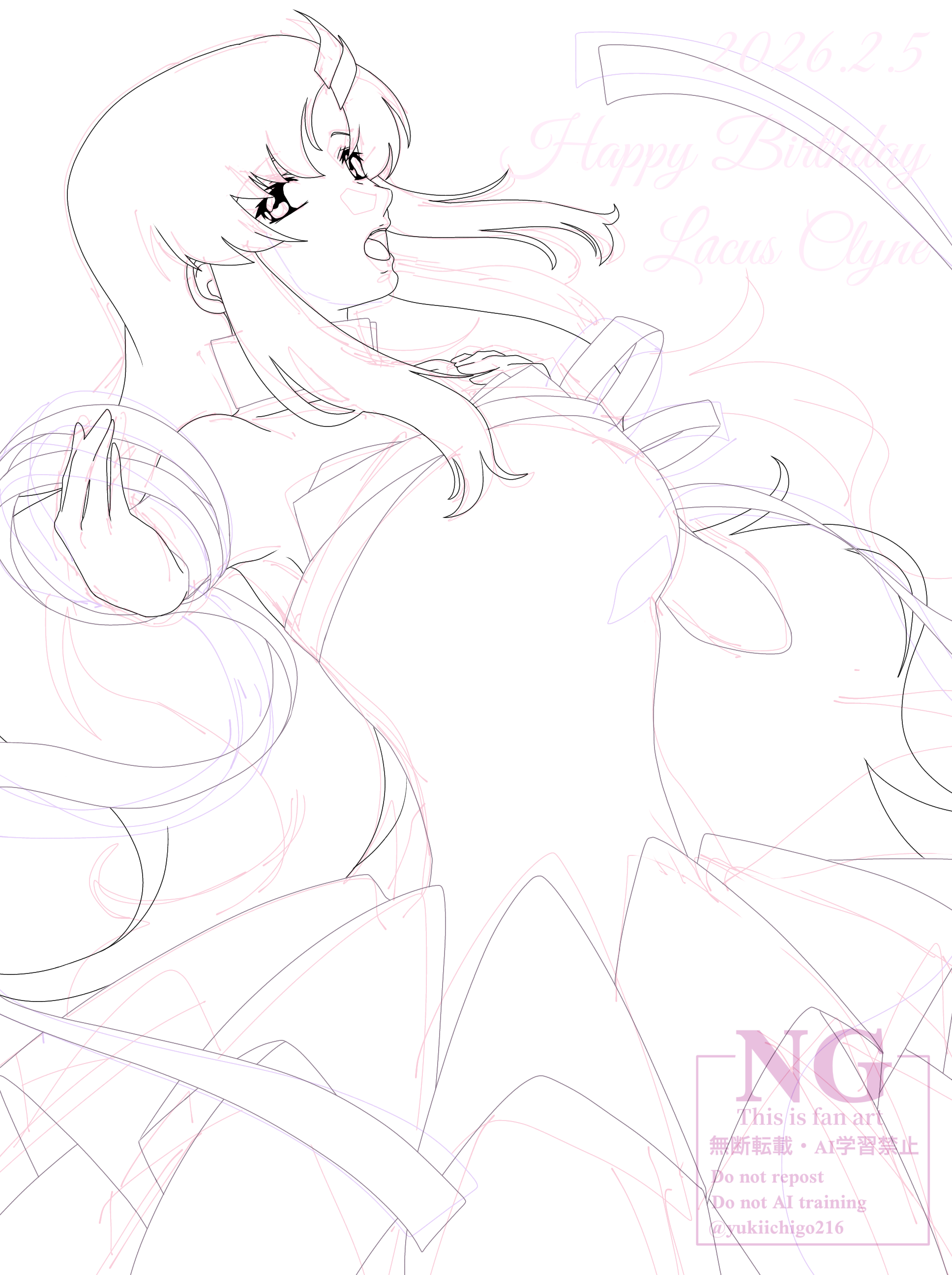 誕生日イラストはこの衣装を描こうってずっと決めていたんですが、やっぱりこの暁ドレス風の衣装は難しいですね…。というのも模様がっ!ドレス自体はとっても大好きなんですが描くとなると模様の描き込みがめちゃ大変です😂今回もこの模様だけで30分かかりましたね…。
