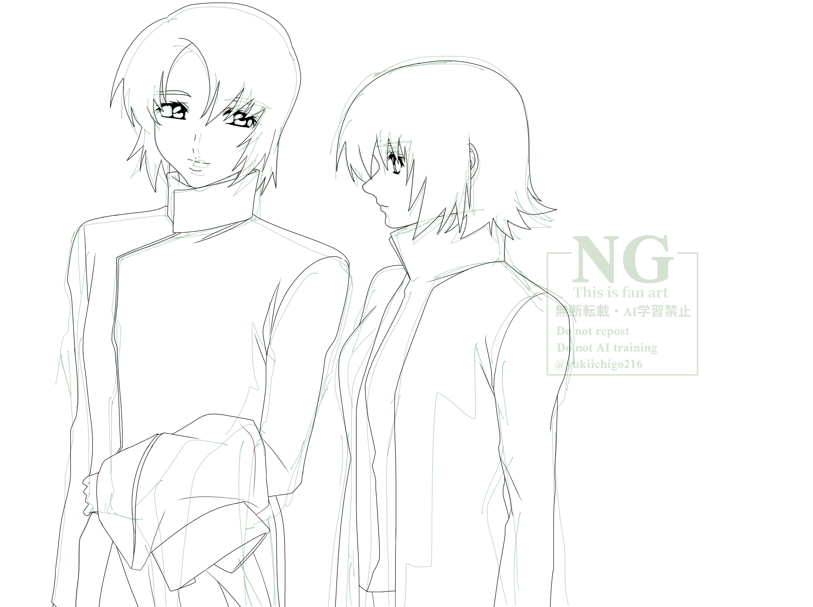 長かったし分からないことばっかりで大変だったけど楽しかった方が上回っていて、あーもう19ページ描いちゃったのか…という気持ちになってます。まだまだ完成じゃないんですけど、アスランとカガリというキャラクターを自分の解釈で線画で最後まで描き切るということは私の中ではとても大きいことなので。