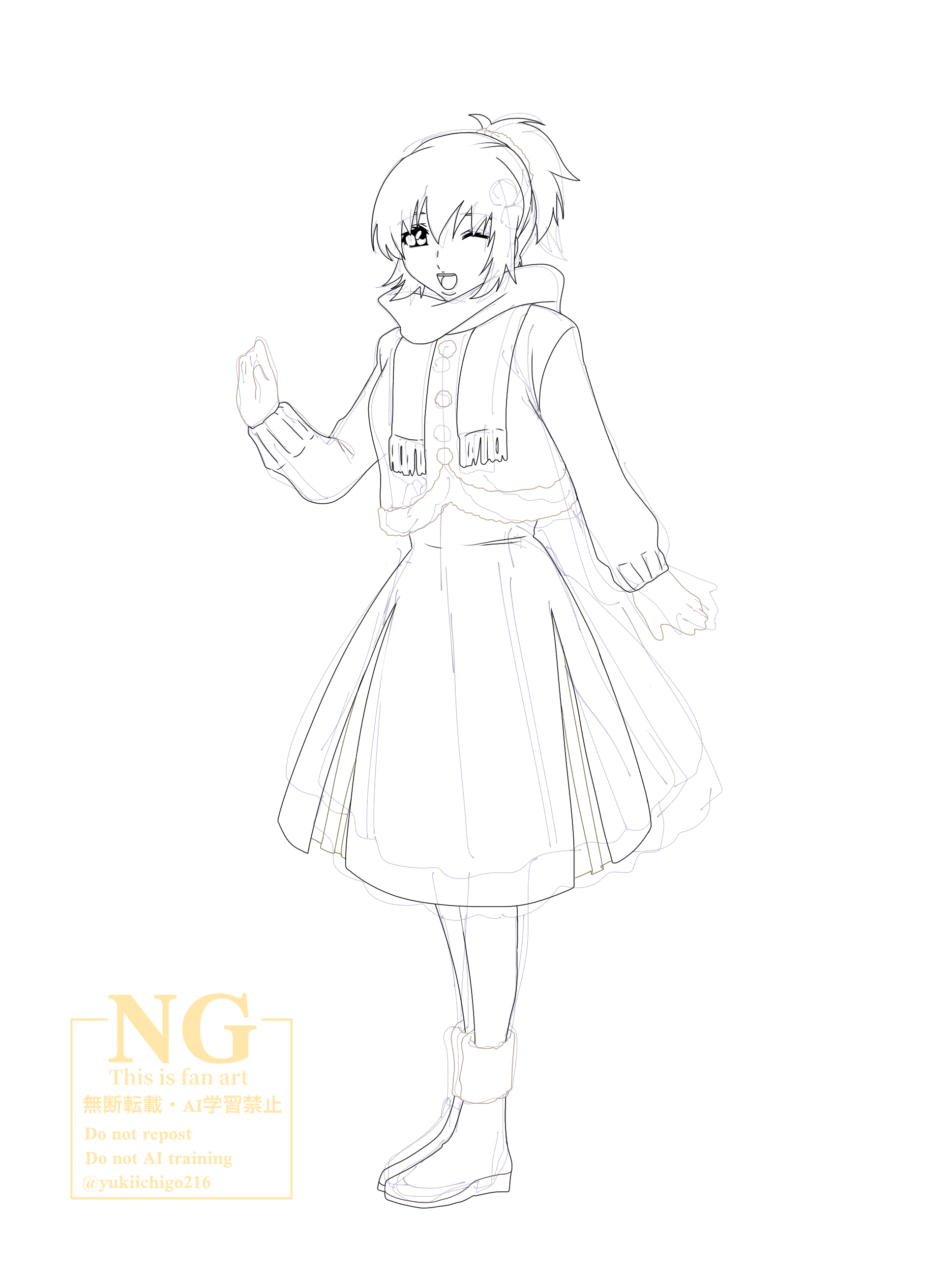 20251223(火)22:20コメントする ( 0 )創作衣装のイラスト、2枚目はカガリです💛ラクスとはまた雰囲気を変えたいなと思って色々考えながら描きました。あったかい感じにしたくてマフラー、手袋、あとは線が柔らかく見えるような衣装にしてみて、マフラーだけはアセべのアスランとお揃いのマフラーにしました✌️