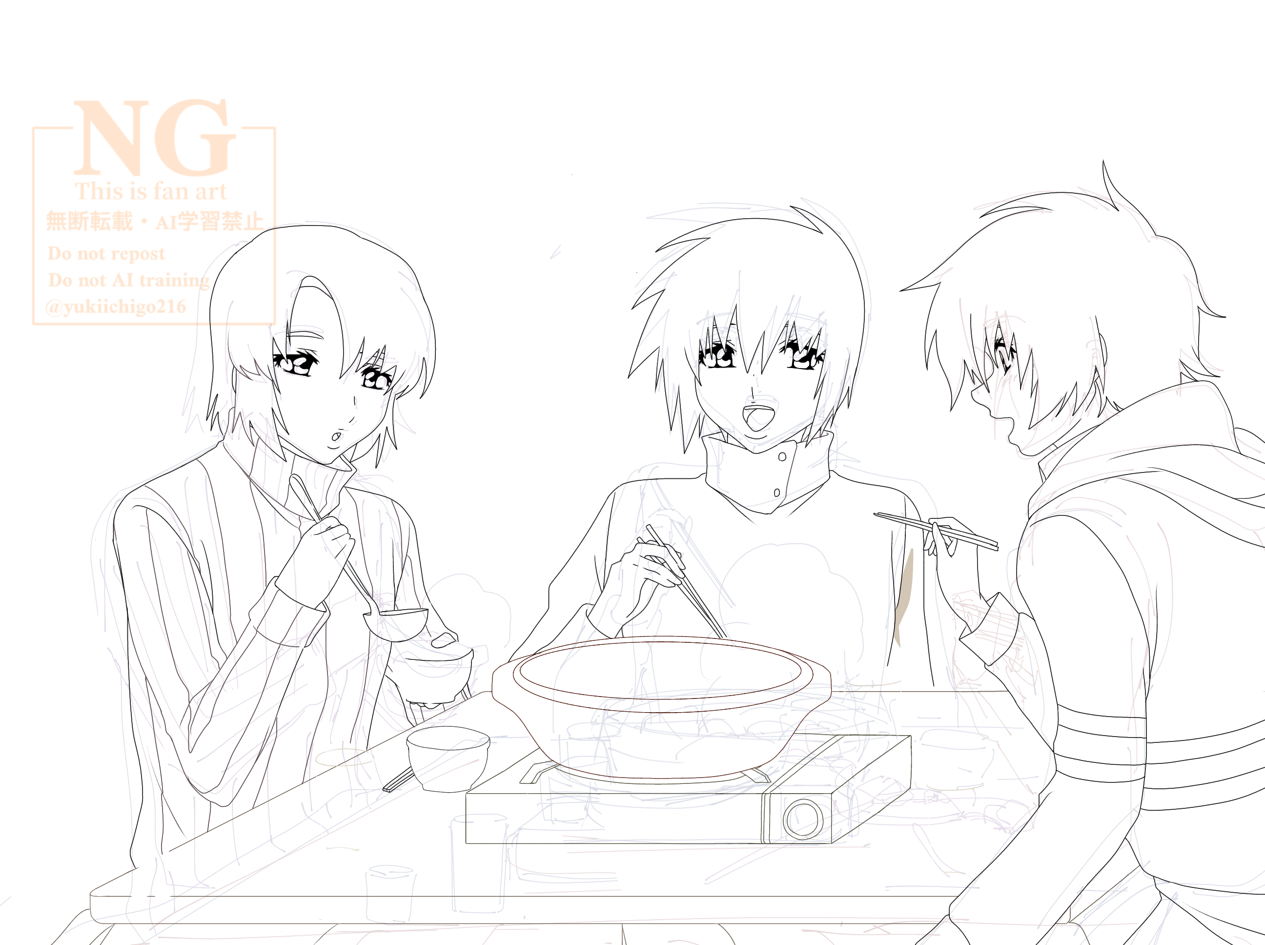 そして大晦日絵と正月絵。色々書き込みが多かったし苦戦しましたが、とても大満足な仕上がりになりました。特に鍋パのあの絵は鍋とかこたつとか全部手書きだし、パースとかも意識しながらだったので…🥲(半泣き)