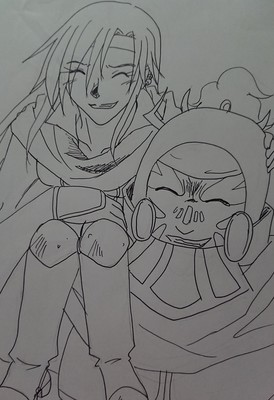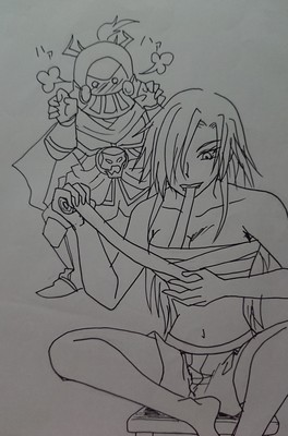 ちなみに、ギルガメッシュの頭巾と源氏の小手を身に付けてるファリスは、Twitterで同士フォロワー様のTLで、FFRKのスクショでファリスの装備がこの状態で、「彼シャツ的なヤツです!!」と言われて、思わず描いてしまったモノです(笑)