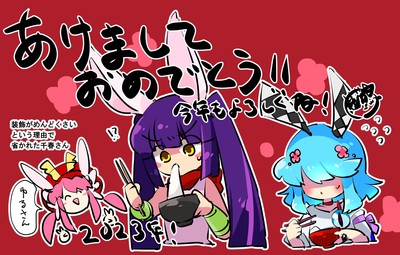 2023年のお正月に描いたイラスト。兎年ということで、うさ耳が特徴的な3人(…?)を描きました。