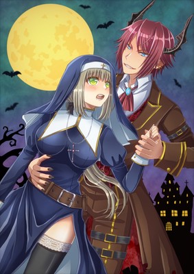 ハロウィンに描いた、悪魔京介とシスターすずです。かなり気合い入れて描いたのでお気に入りです。